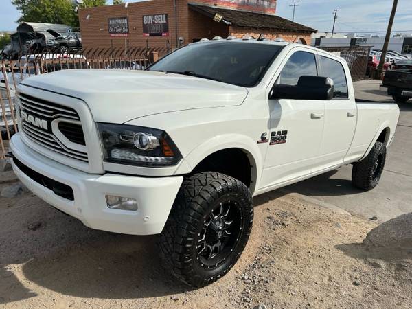 2018 Ram 3500 Laramie Crewcab Longbed 4X4 6.7L Diesel!!! Gorgeous Truck loaded with options, white exterior with black leather interior, 4 wheel drive, 6.7L Diesel Turbo Diesel, power windows, power locks, power steering ,power sliding rear window, dual power seats, heated/ ventilated seats, navigation, AM/FM, Sirius XM, Front and rear parking sensors, back up camera, front and rear ice cold A/C, and more!! Priced at only $35,888 + TTL!!!