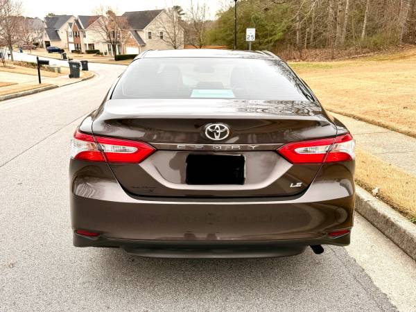 Super clean 2018 Toyota Camry LE premium edition, Bluetooth, Back up camera, AUX. USB. front collision warning assistant, Lane departure warning assistant, smart cruise control, clean Georgia title, New emissions, runs great, no leaks, no mechanical issues, no scratches nobody damage, no ribs in the seats. The vehicle looks and drives perfect very good tires, nothing needs to be done. The vehicle is ready to go. Price is firm,,Call me or text me at.77O,,9O5..348I.
