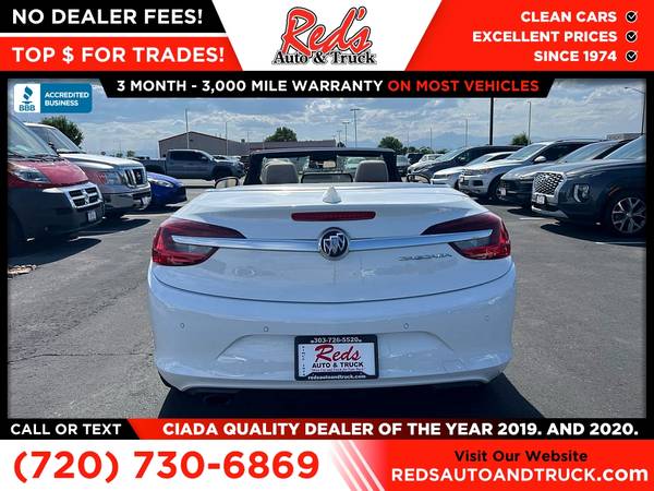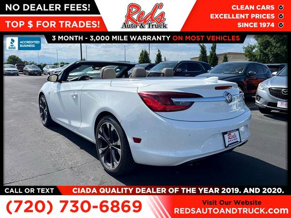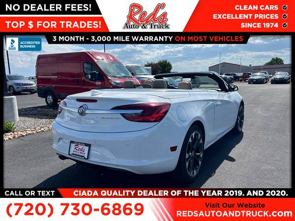 Red's is pleased to present this 2019 Buick Cascada! This stylish and sporty convertible just hit our lot and is ready for its new owner. With only 97,067 miles on the odometer, it offers an exciting combination of luxury and fun . This Buick Cascada is loaded with options, including the Sport Touring Package, premium leather seats, dual-zone climate control, a premium audio system, remote start, and a power-folding soft top! Recently serviced in our shop with a fresh oil change and a full inspection, this vehicle is ready to enjoy today! Remember, we also never charge a dealer handling or doc fee. We include a limited warranty on most vehicles and offer great protection plans at an affordable price to help protect your purchase for years to come.