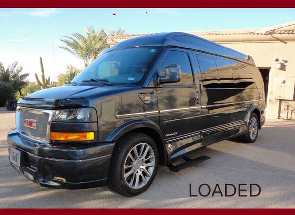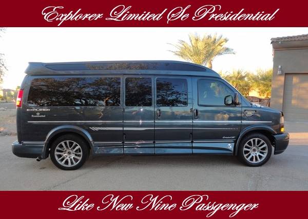 Other Options include, Aerodynamic High Top Roof, 6.2 Liter V-8 Engine, extended 3/4 ton Savanah 2500 package, Extended High Top - Factory Tow Packag, Heavy Duty Window Shades, Privacy Glass/With Deep Tint, Chrome Grill, Vehicle Anti-Theft Alarm System, Daytime Running Lights, Front Custom Console Compartment between two front seats with a Large Tray and Drinks Cooler - Cup Holders -Hdmi Outlet and AC Outlet , Cup holders Package in the back, Special Effects Exterior Moldings, Custom One Tone Leather Seating , Custom Two Tone Interior Package , GMC's Upfitter Package, GMC's OnStar System, 20 Inch Chrome Wheels, Full Size Spare Tire . Intermittent Wipers, Front/Rear Reading Lamps, Tire Pressure Monitoring System, Trip Computer, Telematics, GMC's L-80 Automatic transmission with a Transmission Overdrive Switch, Traction Control, Stabilitrak- Electronic Stability Control, Front Stabilizer Bar, ABS - Antilock Brake System with Front Brake Wear Sensors, Front Independent Suspension, and Clean CarFax History , This is my own private Presidential Van with the last Presidential Package Oaffered for Sale , Sam - 480-205-0409
