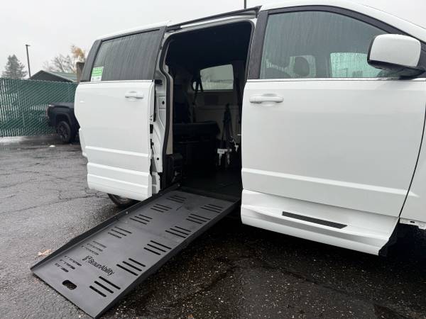 We are proud to present this extremely clean 2019 Dodge Grand Caravan SXT equipped with a BraunAbility powered side-entry side-folding ramp. The conversion is simple and reliable — open the power sliding door using the key fob, ceiling button, or door handle, then operate the C-pillar switch to deploy or retract the ramp. Strong, smooth, and ideal for personal or business mobility needs.