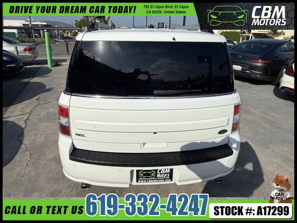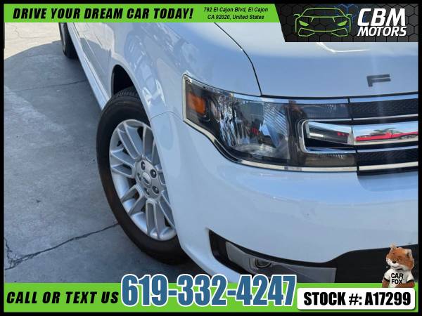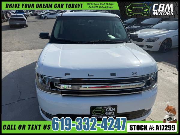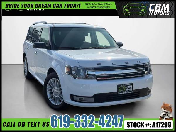 Make a statement with our 2019 Ford Flex SEL shown in Oxford White! Powered by a 3.5 Liter V6 that offers 287hp paired with a 6 Speed SelectShift Automatic transmission. Enjoy nearly 23mpg on the highway with this Front Wheel Drive SUV showing off dual exhaust tips, a bold chrome grille, and painted aluminum wheels. Our SEL gives you the space you need for both passengers and cargo. This convenient SUV offers comfortable leather seating for seven, heated front seats, a second-row 60/40 bench seat with an auto fold feature, and a 3rd-row bench seat. With the two back rows folded down, you have the room available for your packages, home project, vacations, or moving the kids to college. Amenities such as a SecuriCode keyless entry pad, SYNC, full-color navigation, and a fantastic sound system with CD, audio input jack, and USB port work together to enhance your driving experience. Designed with your safety in mind, our Ford takes care of you with ABS, stability/traction control, front side airbags, full-length side curtain airbags, a rearview camera, and MyKey. More than capable of helping you take on your day with its space, versatility, and performance, our Flex SEL is an intelligent choice for you and your on-the-go life. Save this Page and Call for Availability. We Know You Will Enjoy Your CBM Motors Test Drive Towards Ownership! br>