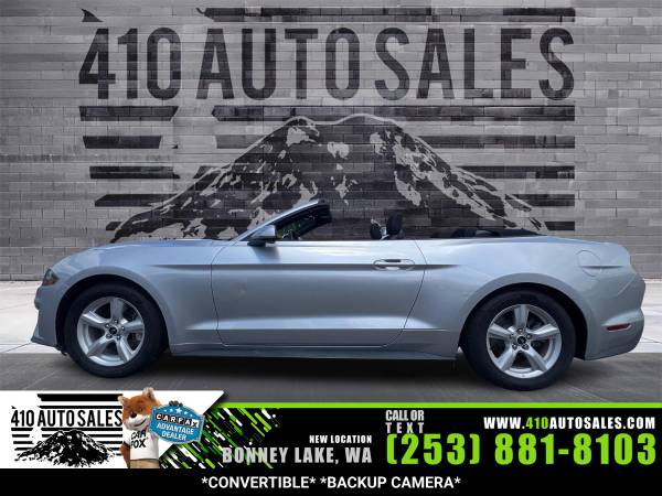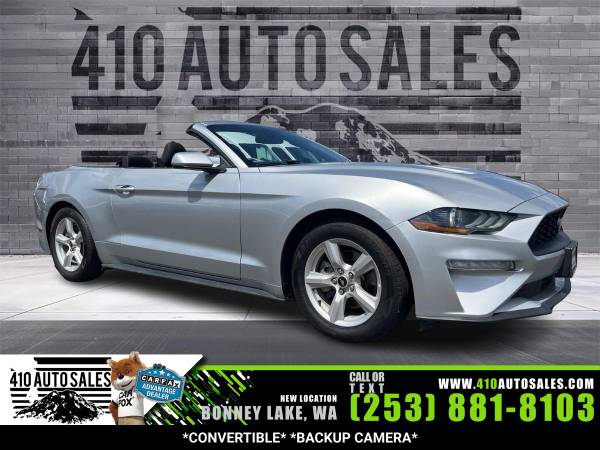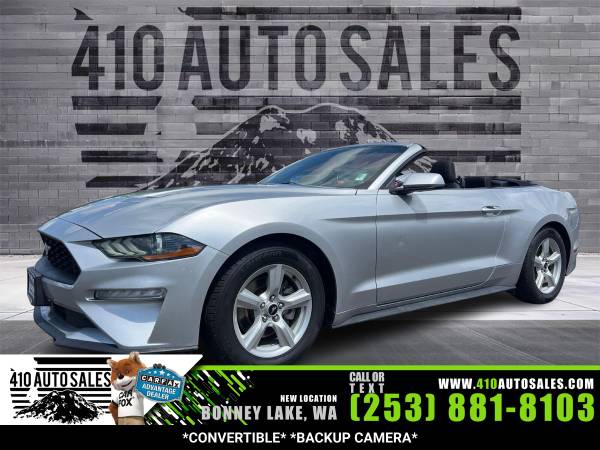SUMMERS HERE AND THIS 2019 FORD MUSTANG CONVERTIBLE IS READY TO ROLL!! THIS COUPE COMES WITH A CLEAN CARFAX AND IS EQUIPPED WITH A POWER RETRACTABLE ROOF, DUAL EXHAUST, HOOD VENTS, 17" WHEELS, PUSH BUTTON START, A BACKUP CAMERA, INDEPENDENT REAR SUSPENSION & MORE!! CALL BEFORE THIS ONE IS GONE... 253-750-3268