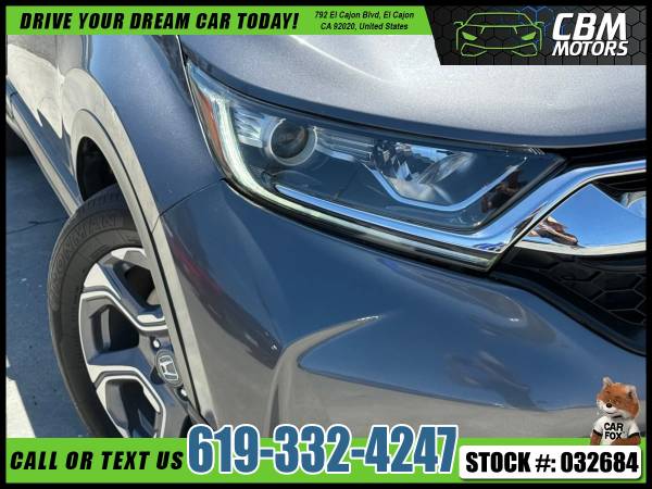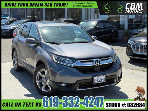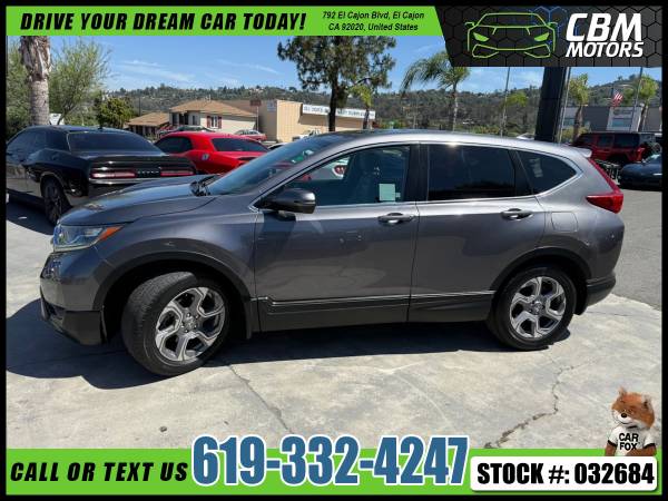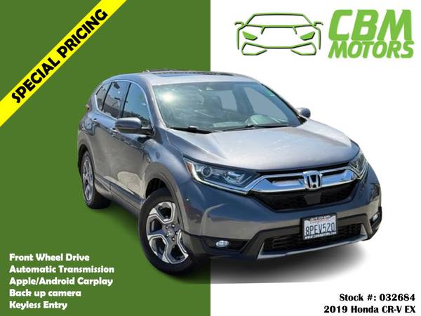 Meet our incredible 2019 Honda CR-V EX shown off in Modern Steel Metallic! Powered by a TurboCharged 1.5 Liter 4 Cylinder that generates 190hp connected to an innovative CVT for smooth passing. This trendsetting Front Wheel Drive SUV offers nearly 34mpg on the highway, composed handling, and a comfortable ride. Our CR-V EX shines brightly with its sculpted, distinctive stance, LED front daytime running lights, huge sunroof, and great-looking alloy wheels. Enjoy the Smart Entry/Walk Away feature inside our EX, remote engine start, heated front seats, automatic climate control, power windows/locks, and easy fold-down 60/40 split rear seats. Our CR-V also features a 7-inch display audio touchscreen, Bluetoothยฎ, HondaLink, Apple CarPlayยฎ/Android Autoยฎ compatibility, and available satellite radio. Honda has outfitted this machine with a multi-angle rearview camera, ACE body structure, advanced airbags, vehicle stability assist, and ABS. Honda Sensing, featuring lane-keeping assist, adaptive cruise control, and collision/road departure mitigation, is also included. We know you'll applaud our CR-V EX's smart design and incredible versatility as soon as you get behind the wheel. Save this Page and Call for Availability. We Know You Will Enjoy Your CBM Motors Test Drive Towards Ownership! br>