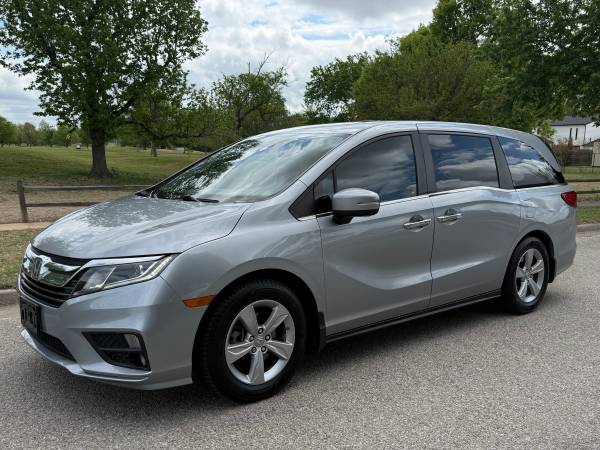 This is an absolutely gorgeous and incredibly clean Honda Odyssey EX-L with high miles on it. It's been very well serviced with 44 service records on the Carfax. Timing belt and water pump has all been done. It is equipped with push button start, leather heated seats, Apple CarPlay/android Auto, sunroof, power sliding doors and power liftgate, multiple safety features including emergency braking, adaptive cruise control, lane departure warning and more. Tires are in fantastic shape and vehicle has not been smoked in. The market on these vehicles is right around $20,000 but we have it priced where we do because of the higher miles. Comes with 2 keys/remotes.