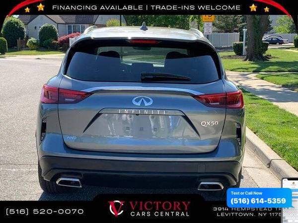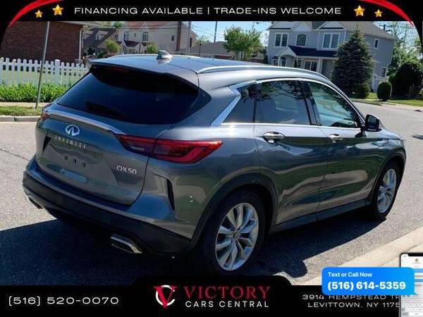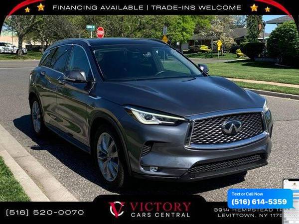 All pricing and details are believed to be accurate, but we do not warrant or guarantee such accuracy. The prices shown above may vary from region to region, as will incentives, and are subject to change. All cars are sold cosmetically As-Is. Vehicle information is based on standard equipment and may vary from vehicle to vehicle. Call or email for complete vehicle specific information. Price Does not include tax, title, license, destination charges, finance charges, or any reconditioning fees. Our special Internet pricing cannot be extended without a printed copy of the online pricing. The in-store price may exceed our special online pricing. Sorry but we cannot extend special pricing without a printed copy of the on-line pricing. To take advantage of our special Internet discounts, please print this page and present it to your salesperson at the BEGINNING of the transaction. Special Internet pricing posted on this ad/coupon/promotion is only available to customers who reference such pricing & present the ad at time of sale otherwise our store standard list price applies. Please be advised this ad is a Special Internet only ad. Prices can be modified and adjusted weekly, daily and sometimes hourly due to inquiries, bidding and website traffic on any Vehicles. All displayed inventory is subject to prior sale and all prices expire at midnight on the date displayed. Every reasonable effort has been made to ensure the accuracy of the information contained on this site, however absolute accuracy cannot be guaranteed. Advertised special excludes state tax, title, license, registration, NY state inspection, NYS tire recycling fee, finance charges, and dealer fees if applicable. Please verify any information in question with the dealership sales manager. This is easily done by calling us at 516-520-0070 or by visiting us at the dealership. **With approved credit. Graphite Shadow 2019 INFINITI QX50 LUXE AWD CVT I4