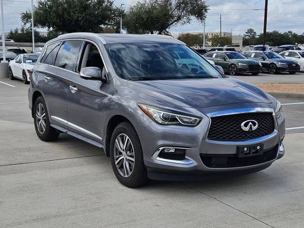 * [K01] Essential Package * Sun/Moonroof * Leather Seats * Navigation System * 3rd Row Seat * [B92] Splash Guards (Color Matched; Set Of 4) * Keyless Start * Rear Spoiler * [C03] 50 State Emissions * Graphite Shadow * Graphite; Seat TrimThis vehicle includes a Money-Back Guarantee* and passed our precise inspection process. Best of all the price you see is the price you pay. No haggling. No back and forth. No pressure. And this price is so good it is guaranteed.Looking for a clean, well-cared for 2019 INFINITI QX60? This is it. In their original incarnation, SUVs were chiefly owned by folks who valued utility above sport. Not anymore! The INFINITI QX60 LUXE redefines the SUV and makes the perfect all around family companion. Indulge yourself with one of the most highly crafted, most luxurious automobiles available today. In addition to being well-cared for, this INFINITI QX60 has very low mileage making it a rare find. Surprising quality accompanied by a high level of performance...this Graphite Shadow on Graphite INFINITI QX60 LUXE could end up being the perfect match for you.*Money-Back Guarantee is valid for 5 days or 250 miles, whichever comes first. Subject to certain terms and conditions. See store for details. Some restrictions apply.