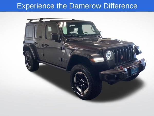 CARFAX One-Owner. Clean CARFAX. Clean Vehicle History Report, One Owner, Local Trade, Low Miles, AWD / 4x4/ Four Wheel Drive, Wrangler Unlimited Rubicon, 4D Sport Utility, 2.0L I4 DOHC, 8-Speed Automatic, 4WD, Granite Crystal Metallic Clearcoat, Black Leather, 1-Year SiriusXM Guardian Trial, 240 Amp Alternator, 4G LTE Wi-Fi Hot Spot, 5-Year SiriusXM Traffic Service, 5-Year SiriusXM Travel Link Service, 7 & 4 Pin Wiring Harness, 700 Amp Maintenance Free Battery, 8.4" Radio & Premium Audio Group, 8.4" Touchscreen Display, Advanced Brake Assist, Advanced Safety Group, Auto-Dimming Rear-View Mirror, Auxiliary Switches, Blind Spot & Cross Path Detection, Class II Receiver Hitch, Cold Weather Group, Daytime Running Lamps LED Accents, Emergency/Assistance Call, For Details, Visit DriveUconnect.ca, Front LED Fog Lamps, Full Speed Forward Collision Warning Plus, GPS Navigation, HD Radio, Heated Front Seats, Heated Steering Wheel, LED Lighting Group, LED Reflector Headlamps, LED Taillamps, ParkSense Rear Park Assist System, Quick Order Package 28R, Radio: Uconnect 4C Nav w/8.4" Display, Safety Group, SiriusXM Traffic Plus, SiriusXM Travel Link, Trailer Tow & HD Electrical Group. 4WD Odometer is 22636 miles below market average! Granite Crystal Metallic Clearcoat