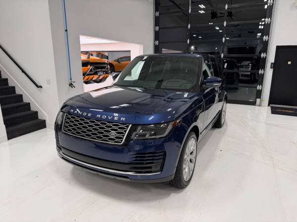 This 1-Owner 2019 Land Rover Range Rover is finished in Special Order SVO Balmoral Blue over Ebony Leather interior. Power is provided by a supercharged V8 engine driving all wheels through an 8-speed transmission.