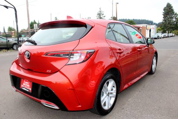 2019 Toyota Corolla Hatchback SE CLEAN TITLE IF YOU SEE OUR INVENTORY ON F B MARKET PLACE WE WILL NOT RESPOND TO TEXT MESSAGING OR NEGOTIATE OVER TEXT PLEASE CALL US FOR MORE INFORMATION AND TO SET UP AN APOOINPMET THANK YOU.2019 Toyota Corolla HatchbackTurn heads wherever you go in this sleek Red 2019 Toyota Corolla Hatchback! This beauty is powered by a 2.0L I4 engine, delivering impressive performance with front-wheel drive for a smooth and enjoyable ride. The striking exterior features clearcoat paint, LED headlights, and a compact spare tire for added convenience.Step inside to find a comfortable and stylish interior with leather accents throughout. The spacious cabin offers a range of features including a leather-wrapped steering wheel, cruise control, and a 4-way passenger seat. Stay connected with the 2 LCD monitors and enjoy the convenience of a rearview camera for added safety.Take on the road with confidence knowing that this Corolla Hatchback comes equipped with Toyota Safety Sense (TSS) 2.0, including collision mitigation and driver monitoring. Plus, rest assured with the availability of a Carfax report to give you added peace of mind.Don't miss out on the opportunity to own this impressive Red 2019 Toyota Corolla Hatchback - a stylish and reliable choice for your next adventure!Driving the Toyota Corolla HatchbackToyota has recommitted to building fun and exciting cars from the ground up, and the 2019 Corolla Hatchback is a perfect example. The taut suspension, precise steering and quick-reacting brakes all keep the promises made by the Corolla Hatchbacks aggressive styling. The 2.0-liter engine offers 168 horsepower, which may not seem like much but actually delivers fairly brisk performance in this lightweight 5-door. The standard 6-speed manual with downshift-rev-matching is a joy, but we think many people will actually prefer the convenience of the continuously variable automatic transmission (CVT), and were okay with that. Why? Because this is one of the smoothest, most engaged CVTs weve driven in a while, with clever features like a built-in launch gear that delivers instantaneous acceleration from a dead stop.Theres also the added benefit of greatly improved fuel economy over the manual, as well as additional safety features like full-speed dynamic cruise control. Toss the Corolla Hatchback into a corner, and youll delight at its ability to instantly go where its pointed without complaint. The big 18-inch wheels and tires on the XSE offer the most grip, yet the ride never feels choppy or irritating, even over rough patches of pavement.FINANCING for ALL types of credit! As a CUDL (Credit Union Direct Lender) We are able to get the best % rates available OAC. We have aggressive first time buyers programs. Apply on line. https://www.eandjmotors.com/creditappGet an answer within minutes. We Buy Cars,? Trucks,? and SUVs.Se habla espanol llame ya! Financiamento para todos! Si se puede! O.A.C.Check out our Awesome Reviews!!! TEXT / CALL 503.741.8762Visit E and J Motors online at eandjmotors.com to see more pictures of this vehicle or call us at 503-257-0159 today to schedule your test drive Visit E and J Motors online at eandjmotors.com to see more pictures of this vehicle or call us at 503-257-0159 today to schedule your test drive.1st time buyer program available 0.00 down 6 month job O.A.C .