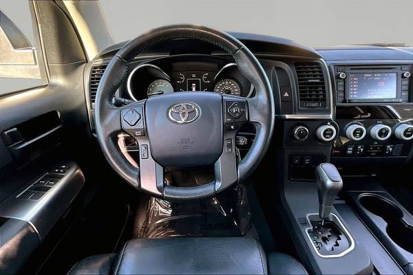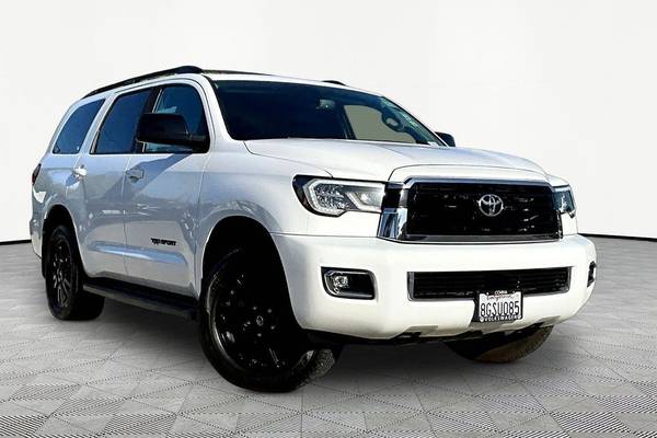 TRD Sport Grade Package, 8 Speakers, AM/FM radio: SiriusXM, CD player, Radio: Entune Audio Plus, Air Conditioning, Automatic temperature control, Front dual zone A/C, Rear air conditioning, Rear window defroster, 2nd Row Captains Seats, Power driver seat, Power steering, Power windows, Remote keyless entry, Steering wheel mounted audio controls, Four wheel independent suspension, Speed-sensing steering, Traction control, TRD Sport Shocks, TRD Sport Sway Bars, 4-Wheel Disc Brakes, ABS brakes, Dual front impact airbags, Dual front side impact airbags, Front anti-roll bar, Knee airbag, Low tire pressure warning, Occupant sensing airbag, Overhead airbag, Rear anti-roll bar, Power moonroof, Brake assist, Electronic Stability Control, Exterior Parking Camera Rear, Auto High-beam Headlights, Delay-off headlights, Front fog lights, Fully automatic headlights, Headlight cleaning, Panic alarm, Security system, Active Cruise Control, Distance pacing cruise control: Dynamic Radar Cruise Control (DRCC), Speed control, Bumpers: body-color, Heated door mirrors, Power door mirrors, Roof rack, Spoiler, TRD Sport Badge, Driver door bin, Driver vanity mirror, Front reading lights, Illuminated entry, Leather Shift Knob, Outside temperature display, Overhead console, Passenger vanity mirror, Rear reading lights, Rear seat center armrest, Tachometer, Telescoping steering wheel, Tilt steering wheel, TRD Shift Knob, TRD Sport Door Sill, TRD Sport Floor Mats, Trip computer, Voltmeter, 3rd row seats: split-bench, Front Bucket Seats, Front Center Armrest, Reclining 3rd row seat, Split folding rear seat, Sport Fabric Seat Trim, Passenger door bin, Alloy wheels, Wheels: 20" Aluminum, Rear window wiper, Variably intermittent wipers, 4.30 Axle Ratio