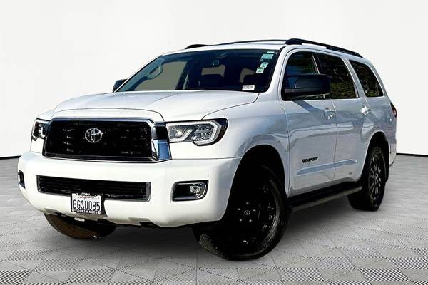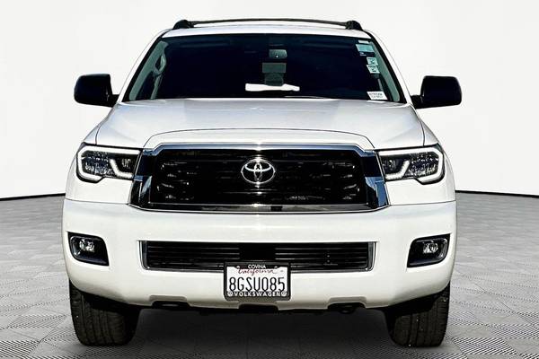 This vehicle includes: TRD Sport Grade Package, ABS brakes, Active Cruise Control, Alloy wheels, Electronic Stability Control, Front dual zone A/C, Heated door mirrors, Illuminated entry, Low tire pressure warning, Power moonroof, Remote keyless entry, Traction control, Wheels: 20" Aluminum, 2nd Row Captains Seats, 3rd row seats: split-bench, 4-Wheel Disc Brakes, 4.30 Axle Ratio, 8 Speakers, Air Conditioning, AM/FM radio: SiriusXM, Auto High-beam Headlights, Automatic temperature control, Brake assist, Bumpers: body-color, CD player, Delay-off headlights, Distance pacing cruise control: Dynamic Radar Cruise Control (DRCC), Driver door bin, Driver vanity mirror, Dual front impact airbags, Dual front side impact airbags, Exterior Parking Camera Rear, Four wheel independent suspension, Front anti-roll bar, Front Bucket Seats, Front Center Armrest, Front fog lights, Front reading lights, Fully automatic headlights, Headlight cleaning, Knee airbag, Leather Shift Knob, Occupant sensing airbag, Outside temperature display, Overhead airbag, Overhead console, Panic alarm, Passenger door bin, Passenger vanity mirror, Power door mirrors, Power driver seat, Power steering, Power windows, Radio: Entune Audio Plus, Rear air conditioning, Rear anti-roll bar, Rear reading lights, Rear seat center armrest, Rear window defroster, Rear window wiper, Reclining 3rd row seat, Roof rack, Security system, Speed control, Speed-sensing steering, Split folding rear seat, Spoiler, Sport Fabric Seat Trim, Steering wheel mounted audio controls, Tachometer, Telescoping steering wheel, Tilt steering wheel, TRD Shift Knob, TRD Sport Badge, TRD Sport Door Sill, TRD Sport Floor Mats, TRD Sport Shocks, TRD Sport Sway Bars, Trip computer, Variably intermittent wipers, and Voltmeter.