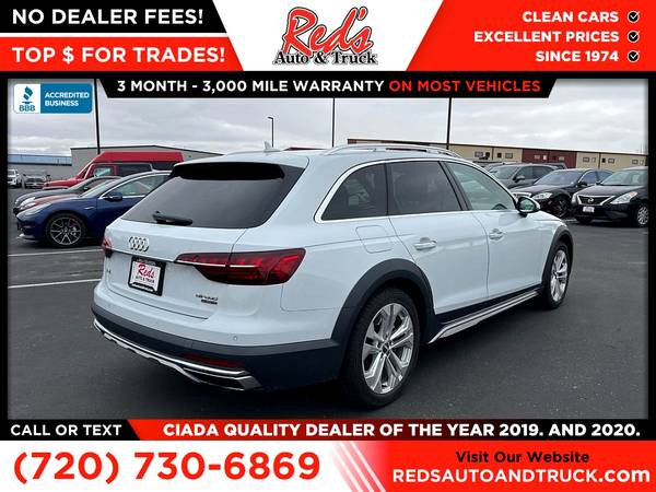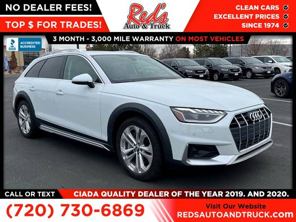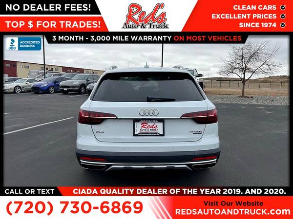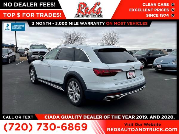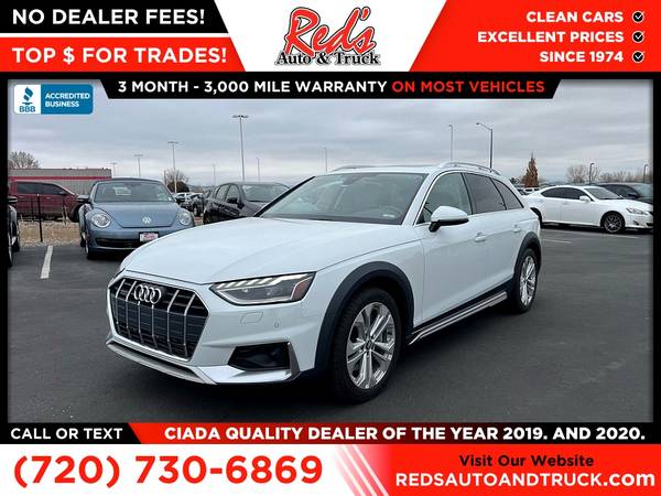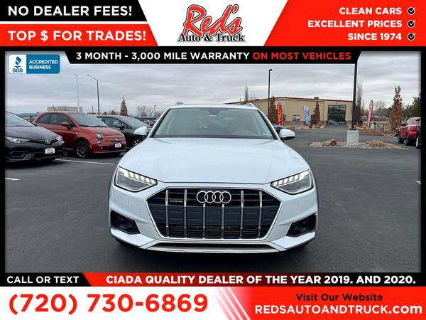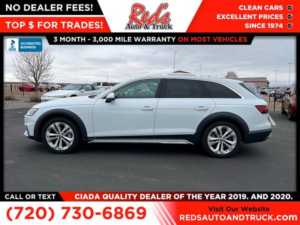 Red's is pleased to present this 2020 Audi A4 Allroad Premium Plus 2.0! This Accident-free Allroad just hit our lot with an impressive original MSRP of over $52,000! This Audi is well optioned with the Navigation Package, Cold Weather Package, Bang & Olufsen sound system, and so much more! This Audi just passed through our shop with a full inspection and fresh oil change so come on down for a test drive today! Remember, we also never charge a dealer handling or doc fee, include a limited warranty on most vehicles, and offer great protection plans at an affordable price to help protect your purchase for years to come.Please call Reds Auto and Truck at 303-726-5520. We are a proud member of CUDL and have access to many Credit unions at great rates. We are A+ Rated with the BBB, Winner of the 2019 & 2020 CIADA Quality Dealer Of The Year Award, have excellent online reviews, and have been in business since 1974 come see why. We offer clear low upfront prices and also have no dealer handling or documentation fees! Our vehicles undergo a multi-point inspection and reconditioning process and most vehicles come with a 3-month 3,000-mile limited warranty. You can always see more photos and other cars at www.redsautoandtruck.com (http://www.redsautoandtruck.com/) or stop by 1451 Vista View Drive Longmont CO 80504.
