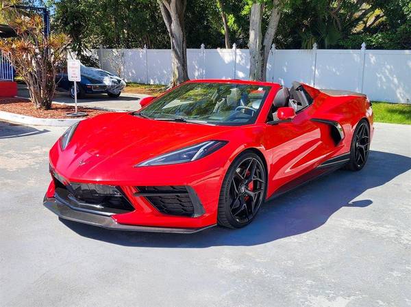CORVETTE 2020 STINGRAY CONVERTIBLE, Torch Red with Jet Black Leather Interior, 8-Speed Automatic Transmission, 3LT Premium Equipment Package, Bose Performance Series Audio system, Head Up Display, Front Curb View Camera, Memory Package, Rear Camera Mirror, Performance Data Recorder, Heated and Ventilated Seats,Universal Home Remote, Satellite Radio, Dual Zone Air Conditioning, Carbon Fiber Package, Goodyear Z06 Tires, Borla ATAK Exhaust, Paint Protection Film, $20k in upgrades, Traded to us by a local Corvette enthusiast who has purchased 5 Corvettes from Toy Store. Car has received multiple show trophies. This stunning C8 convertible has been driven on average less than 4,700 miles per year. This vehicle qualifies for our exclusive V.I.P. financing plan. EXCELLENT VALUE - Compare at $69,950 - Our wholesale price $63,750 / $629 mo. V.I. P. Call for details. Toy Store, Largo, Fl 727-585-6000 www.vettenet.com Open 6 days, Sunday by appointment WE BUY CLEAN CORVETTES! Shipping assistance available to 48 states. We can help with less than perfect credit. Trades considered. SELLING QUALITY LOW MILEAGE CORVETTES FOR 61 YEARS! EXPECT TO BE IMPRESSED PERFORMANCE SPOKEN HERE