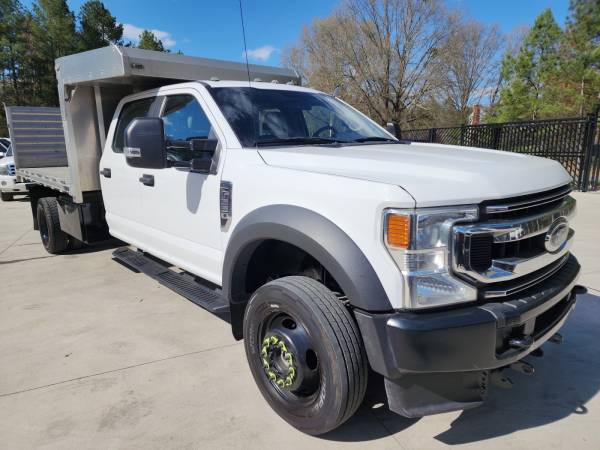 OPTIONS: GVWR: 19,500 lb, Crew Cab, Electric over Hydraulic Tilt Aluminum Flatbed Dump Bed by EBY, Manual Driver Seat, Manual Passenger Seat, Gray Leather Interior, 6 Passenger Seating, Foldable Middle Seat, Bluetooth Connectivity, Power Mirrors, Extendable Tow Mirrors, Power Door Locks, Power Windows, Automatic Headlights Control, Steering Wheel Controls, Cruise Control, Running Boards, Heavy Duty Towing Package, Factory Built-In Trailer Brake Control Module, Dual Rear Wheels, Climate Control, BOSS Snow Plow Push Plate Installed, and much more!!!