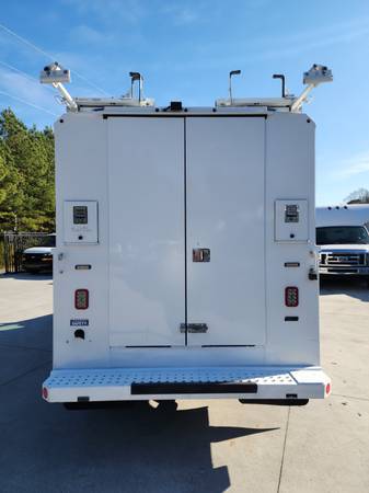 OPTIONS: GVWR 9,950 LBS, 11ft box, Low Roof Cab, Grey Cloth Interior, Manual Front Seats, A/C, Heater, Climate Control, Power Mirrors, Power Windows, Power Door Locks, Overhead Stowage Shelf, Manual Telescoping Steering Wheel, Steering Wheel Controls, Cruise Control, Rear View Camera, Forward Collision Warning System, Lane-Keeping System, Auto High-Beam Headlights, Stand Up Box Height, Heavy Duty Door Hinges on Exterior Access to Storage Areas From Passenger Side, Dual Retractable Ladder Racks, Worktables Inside Box, Overhead Shelving for Tools and Storage, Interior Box LED Lighting, Low Step Rear Bumper, Dual Rear Wheels and much more options.