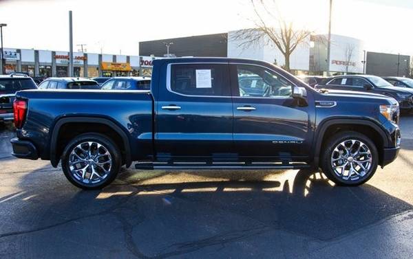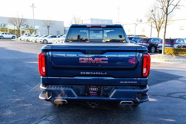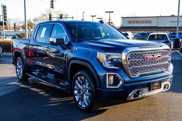 * Lpo; 22" (55.9 Cm) Bright Chrome Wheels * Sunroof; Power * Sun/Moonroof * Leather Seats * Pacific Blue Metallic * Navigation System * Lpo; All-Weather Floor Liner; 1St And 2Nd Rows * Keyless Start * Cooled Front Seat(S) * Chrome Wheels * Audio System; Premium Gmc Infotainment System With Navigation And 8" Diagonal Color Touch-Screen; Includes Multi-Touch Display; AM/FM Stereo * Denali Preferred Equipment Group * Emissions; Federal Requirements * Engine; 5.3L Ecotec3 V8 * Gvwr; 7100 Lbs. (3221 Kg) * Jet Black; Forge Perforated Leather-Appointed Seat Trim * Rear Axle; 3.23 Ratio * Seats; Front Bucket * Tires; 275/50R22Sl All-Season; Blackwall * Transmission; 10-Speed Automatic; Electronically Controlled * Wheels; 22" Transit Steel Wheels For Lpo 22" Wheels And TiresThis vehicle includes a Money-Back Guarantee* and passed our precise inspection process. Best of all the price you see is the price you pay. No haggling. No back and forth. No pressure. And this price is so good it is guaranteed. *Money-Back Guarantee is valid for 5 days or 250 miles, whichever comes first. Subject to certain terms and conditions. See store for details. Some restrictions apply.This vehicle had an original MSRP of $ XXXX . It is well equipped with XXXXXX . This GMC includes: ENGINE, 5.3L ECOTEC3 V8 8 Cylinder Engine Gasoline Fuel *Note - For third party subscriptions or services, please contact the dealer for more information.* Indulge yourself with one of the most highly crafted, most luxurious automobiles available today. Want to brave the road less traveled? You'll have the 4WD capabilities to do it with this vehicle. The incredibly low mileage and painstaking upkeep on this GMC Sierra 1500 makes it a once-in-a-lifetime deal that won't last long! Call us today to reserve your test drive! Put away your phone and focus on the road, your new vehicle has navigation.