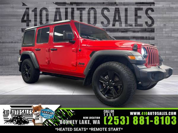 Jeep Wrangler Unlimited Altitude 2246,1c4hjxdn7lw300134,410 auto sales,2.0l turbo i4 270hp 295ft. lbs.,2020 jeep wrangler unlimited sport altitude,used vehicles,used suv,410 auto sales,bonney lake,wa,jeep,wrangler unlimited,altitude,suv,gas,red exterior,black interior,cloth,cloth interior,automatic,automatic jeep,automatic jeep wrangler unlimited,8 speed speed,4x4,4 doors,4 drs,four doors,5 seats,five seats