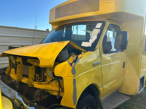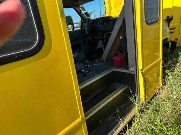 2020 Shuttle Bus Ford E450 15 passenger with luggage rack. Missing headlights, grille, mirrors and rear bumper and some engine parts. Sustained damage to passenger door, please see pictures. Selling parts of it like seats windows or other mechanical accessories or the whole bus for $1000. Clean title will be transferred to buyers name. Can arrange to deliver to your location within 50 miles for $120 plus $6 per mile example: if you are 10 miles away it will cost 120+60= $180