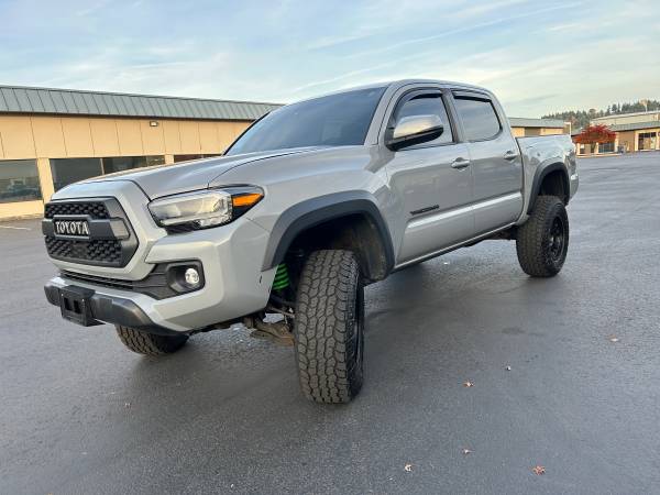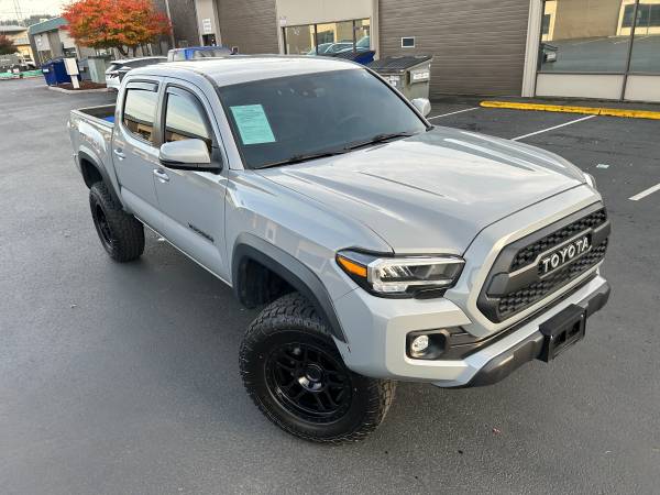 2020 Toyota Tacoma TRD Off Road 4 door Crew pick up 4x4 for sale. It's 3.5l, 6 cyl, timing chain driven engine with automatic transmission. Has power windows and door locks, power mirrors, power/tilt/telescopic steering, cruise control and A/C. Comes with factory Xm/HD Radio, USB/AUX Plug ins and Bluetooth connectivity. Back up camera. Black leather interior with electrically adjustable front driver's seat. Key-less entry with push button ignition start. 5 Ft bed size. Rear Wheel Drive with 4High/4Low driving capability. Rear locking differential, ABS and Traction control equipped. Alloy rims and newer tires. Good brakes all around. Professionally detailed. No issues or problems. EXCELLENT condition. Has only 69,489 original miles and Washington REBUILT title. 2 Previous owners. VIN: 3TMCZ5AN5LM346055. Priced at $28,500. Please call or text whenever, 253 7O9 3I38.