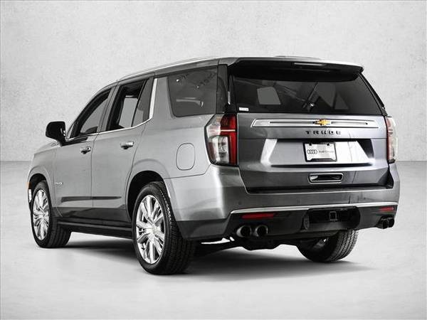 * High Country Deluxe * Assist Steps; Power-Retractable * Sunroof; Power Panoramic; Dual-Pane; Tilt-Sliding * Suspension Package; Air Ride Adaptive * Adaptive Cruise Control * Panoramic Roof * Leather Seats * Navigation System * Max Trailering Package * 3rd Row Seat * Console; Floor; Power-Sliding Center * Lane Keeping Assist * Keyless Start * Heads-Up Display * Cooled Front Seat(S) * Advanced Trailering Package * Advanced Trailering System * Audio System; Chevrolet Infotainment 3 Premium System With Connected Navigation; 10.2" Diagonal Hd Color Touchscreen * Cooling System; Extra Capacity * Emissions; Federal Requirements * Engine; 6.2L Ecotec3 V8 * Enhanced Automatic Emergency Braking * Gvwr; 7500 Lbs. (3402 Kg) * High Country Preferred Equipment Group * Hitch Guidance With Hitch View * Jet Black/Mocha; Perforated Leather Seating Surfaces 1St And 2Nd Row * Rear Axle; 3.23 Ratio * Satin Steel Metallic * Seats; Front Bucket * Trailer Brake Controller; Integrated * Trailer Side Blind Zone Alert * Transmission; 10-Speed Automatic * Wheels; 22" X 9" (55.9 Cm X 22.9 Cm) Sterling Silver Premium Painted2021 Chevrolet Tahoe 4WD High Country! Loaded and ready for a new home! 6.2L EOTEC3 V8, 4WD, $5605 deluxe package, Panoramic moonroof, Air ride suspension, 22'' Wheels, Adaptive cruise control, BOSE premium stereo, Side steps, Navigation, Head-up display, Ventilated and heated front leather seats, 2nd row heated seats, Surround view camera w/ parking sensors, LED headlamps, Power tailgate, and much much more!!! ONLY ONE KEY