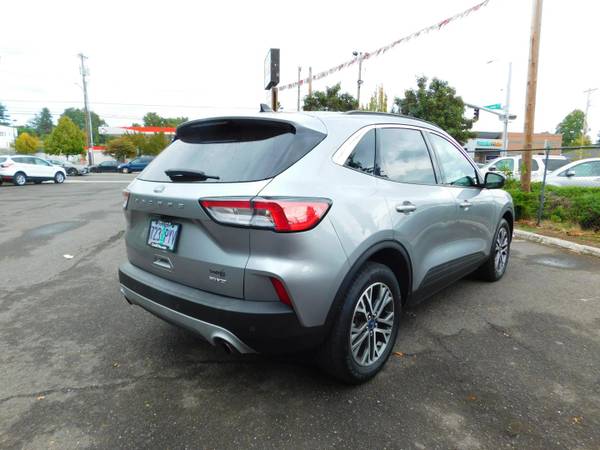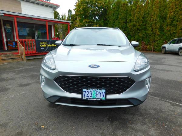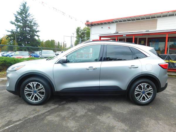Seller Comments: The 2021 Ford Escape SEL AWD is a sophisticated blend of style and performance, highlighted by its sleek Iconic Silver exterior.Under the hood, the 1.5L EcoBoost engine, consisting of 3 cylinders, promises an efficient yet exhilarating driving experience.This model is further supported by a 3.81 axle ratio that ensures smooth transitions and robust power delivery, complementing its agile All Wheel Drive (AWD) drivetrain. Inside, the Escape welcomes you with an Ebony interior that exudes both elegance and comfort, making every journey a pleasure.The panoramic vista roof provides an airy, open feel to the cabin, enhancing both driver and passenger comfort by allowing natural light to pour in from above.Daytime running lamps (DRL) add a bold touch and increase visibility, ensuring that you're both seen and safe during your travels.You’ll appreciate the thoughtful integration of features included in the Equipment Group 301A, which augments both functionality and convenience. The balance of the SEL AWD style offers a perfect fusion of utility and modern aesthetics, appealing to drivers who demand more from their compact SUV.Whether navigating city streets or heading out on a scenic drive, this Escape offers the responsiveness and control needed to tackle all kinds of terrain.The combination of its exterior shine, robust engine, and tech-forward amenities makes the 2021 Ford Escape SEL AWD an alluring choice for anyone seeking a vehicle that stands out in both form and function.