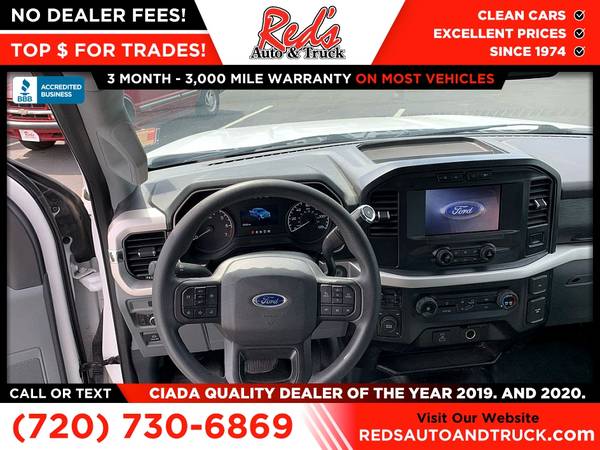 Red's is pleased to present this 2021 Ford F-150 4x4 XL! This awesome F-150 just hit our lot and is a seriously good deal with an original factory MSRP of over $47,000! This F-150 comes extremely well-equipped with options the XL Power Equipment Group, Black running boards, Ford Co-Pilot, Pro Power onboard, Trailer Tow Package, XL Chrome Appearance package, and so much more! Come on down and check out our great inventory of trucks today!Please call Reds Auto and Truck at 303-726-5520. We are a proud member of CUDL and have access to many Credit unions at great rates. We are A+ Rated with the BBB, Winner of the 2019 & 2020 CIADA Quality Dealer Of The Year Award, have excellent online reviews, and have been in business since 1974 come see why. We offer clear low upfront prices and also have no dealer handling or documentation fees! Our vehicles undergo a multi-point inspection and reconditioning process and most vehicles come with a 3-month 3,000-mile limited warranty. You can always see more photos and other cars at www.redsautoandtruck.com (http://www.redsautoandtruck.com/) or stop by 1451 Vista View Drive Longmont CO 80504. Remember, we also never charge a dealer handling or doc fee, include a limited warranty on most vehicles, and offer great protection plans at an affordable price to help protect your purchase for years to come.