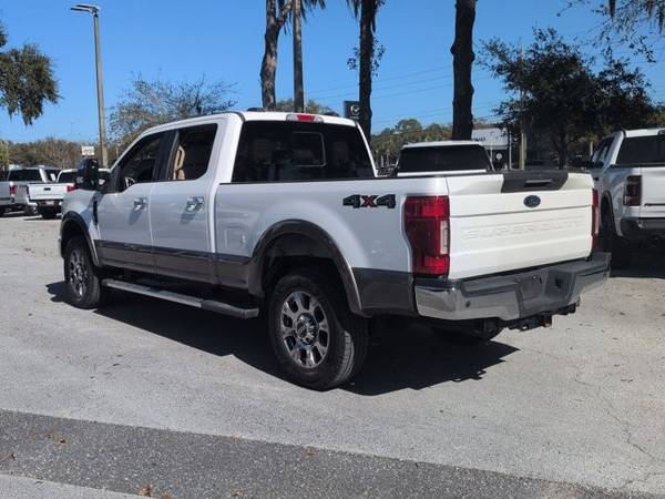 * Lariat Ultimate Package * Engine: 7.3L 2V Devct Na Pfi V8 Gas * Wheels: 20" Chrome Pvd Aluminum * Quad Beam Led Headlamps & Led Taillamps * Chrome Package * 6" Angular Chrome Extended Running Boards * Star White Metallic Tri-Coat * Voice-Activated Navigation * Leather Seats * Navigation System * Lower Accent Two-Tone Paint * Tailgate Step & Handle * Remote Start System * Upfitter Switches (6) * Universal Garage Door Opener (Ugdo) * Keyless Start * Led Box Lighting * Cooled Front Seat(S) * Chrome Wheels * 3.55 Axle Ratio * Medium Light Camel; Front Leather Seating Surfaces 40/Console/40 * Order Code 608A * Tires: Lt275/65Rx20E Owl A/T (4) * Transmission: Torqshift 10-Speed AutomaticThis vehicle includes a Money-Back Guarantee* and passed our precise inspection process. Best of all the price you see is the price you pay. No haggling. No back and forth. No pressure. And this price is so good it is guaranteed. *Money-Back Guarantee is valid for 5 days or 250 miles, whichever comes first. Subject to certain terms and conditions. See store for details. Some restrictions apply.2021 Ford Super Duty F-250 SRW LARIAT 94,734 Miles , 7.3L V8 , One Owner , Clean CARFAX This 2021 Ford Super Duty F-250 SRW LARIAT is a heavy-duty truck built for serious power and refined comfort. Under the hood is the 7.3L V8 gas engine , known for being exceptionally powerful and dependable , delivering impressive towing and hauling capability without the complexity of diesel ownership. Finished in a striking two-tone Star White Metallic and Stone Gray Metallic exterior , this F-250 stands out with a bold, upscale look. With 94,734 miles , a one-owner history , and a clean CARFAX , this truck has been well cared for and is ready to work or travel in style. Key highlights: 7.3L V8 gas engine super powerful performance One-owner vehicle Clean CARFAX Two-tone exterior: Star White Metallic / Stone Gray Metallic LARIAT trim with premium comfort and technology Outstanding towing and heavy-duty capability If youre looking for a powerful, reliable Super Duty that offers both work-ready strength and LARIAT-level luxury , this 2021 Ford F-250 LARIAT is an excellent choice. This one WONT LAST LONG!! There is still plenty of tread left on the tires. The paint is in excellent condition and it is apparent that this car was garaged and meticulously-maintained. This vehicle has all of the right options. This car has successfully undergone a rigorous pre-buy inspection. Very clean interior! CARFAX reports this to be a one-owner car.