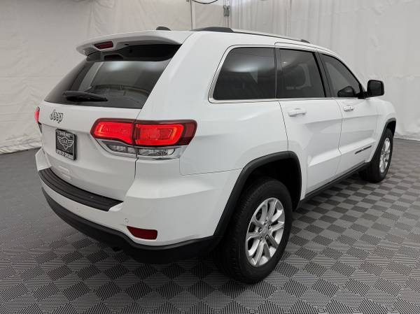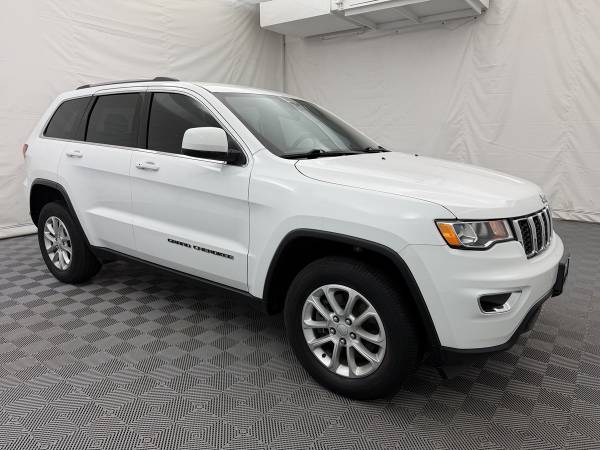 Fiercely independent, our 2021 Jeep Grand Cherokee Laredo E 4X4 in Bright White Clearcoat is defined by iconic style and capability! Powered by a 3.6 Liter Pentastar V6 delivering 293hp matched with an 8 Speed Automatic transmission that's as eager for adventure as you are. This SUV lets you tap into the brand's classic off-road performance with Quadra-Trac Four Wheel Drive, and it still scores nearly 25mpg on the highway. Exuding strength, our Grand Cherokee also shows off premium fog lamps, heated power mirrors, bright roof rails, and alloy wheels. The result is a rugged, refined appearance that's hard to miss. Purpose-built to help you take command of each day, the Laredo E cabin features comfortable cloth seats, a leather-wrapped steering wheel, dual-zone automatic climate control, a 7-inch cluster display, and the sophisticated standard technology you need for easy connectivity. A 7-inch touchscreen, Android Auto®, Apple CarPlay®, Bluetooth®, and a six-speaker audio system are just a few of the features you'll appreciate during your drive. Take advantage of Jeep's capability with peace of mind, knowing that a blind-spot monitor, rear cross-traffic alert, rear parking sensors, a rearview camera, tire pressure monitoring, hill-start assist, and more are on board. You'll dominate workdays and weekends alike in our Grand Cherokee Laredo E! Save this Page and Call for Availability. We Know You Will Enjoy Your Test Drive Towards Ownership!