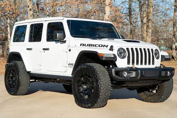 The 4th generation of the Jeep Wrangler is arguably the best design from all the generations before it. The design features the best of the Wrangler marque and set the tone for what was to come. This 2021 Jeep 392 Wrangler Unlimited Rubicon is finished off with a bright White Clear Coat exterior which makes this vehicle look bigger than it already is. You also ride high off the ground thanks to a set of 20" black Rhino Wheels which are wrapped around a set of 35" Nitto Ridge Grapplers. Whilst this 2021 Jeep Wrangler Unlimited Rubicon 392 might have that go anywhere attitude it sure does go anywhere with all of its passengers in sheer comfort and luxury. The black leather interior boasts the best trim the JL jeep has to offer whilst also having adaptive cruise control to make your driving experience better. You also get some safety features as well which include a back-up camera and blind spot monitoring to avoid any scratches when backing up or negotiating tight spaces. The sky touch roof makes for memorable long distance drives.