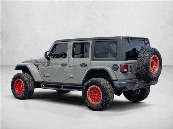 * Transmission: 8-Speed Automatic (850Re) * Black 3-Piece Hard Top * Engine: 3.6L V6 24V Vvt Etorque Upg I * Body Color Fender Flares * Sting-Gray Clearcoat * Mopar All-Weather Floor Mats * Keyless Start * Convertible Hardtop * 4.10 Rear Axle Ratio * Black; Premium Cloth Low-Back Bucket Seats * Gvwr: 5;800 Lbs * Performance Suspension * Tires: Lt285/70R17C Bsw Off-Road * Wheels: 17" X 7.5" Machined W/Black PocketsThis vehicle includes a Money-Back Guarantee* and passed our precise inspection process. Best of all the price you see is the price you pay. No haggling. No back and forth. No pressure. And this price is so good it is guaranteed. *Money-Back Guarantee is valid for 5 days or 250 miles, whichever comes first. Subject to certain terms and conditions. See store for details. Some restrictions apply.2021 Jeep Wrangler Unlimited Rubicon AutoNation Chevrolet West Colonial Call us today at 407-295-7000 to schedule your appointment (walk-ins are always welcome)! The 2021 Jeep Wrangler Unlimited Rubicon is built for adventure, combining legendary off-road capability with modern comfort. Highlights: 3.6L V6 eTorque engine with 8-speed automatic transmission Rock-Trac 4x4 system with Tru-Lok front & rear axles Uconnect 7-inch display with Apple CarPlay & Android Auto Black 3-piece hard top & body-color fender flares Safety features: ParkView rear backup camera & stability control Every vehicle at AutoNation Chevrolet West Colonial gets a rigorous inspection and comes with our 5-Day / 250-Mile Money Back Guarantee . Every used vehicle tells its own story, which might include a few blemishes. By not fixing every cosmetic blemish, we're able to pass lower prices to you. Dont waitcall 407-295-7000 to schedule your appointment today, or stop by, walk-ins are welcome!