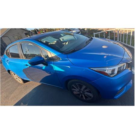 Selling a 2021 Nissan Versa in a sharp blue exterior. This car is known for being one of the most fuel-efficient, affordable, and reliable sedans in its class. Perfect for commuting.