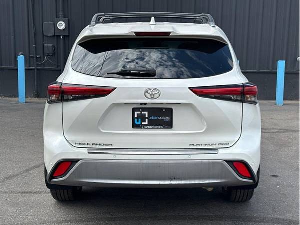 2021 Toyota Highlander Platinum AWD. No Accident CarFax History. Apple CarPlay & Android Auto. Third Row Seating. Toyota Safety Sense: Adaptive Cruise Control, Lane Assist & Pre-Collision Warning. Blind Spot Monitoring. Leather. Cooled & Heated Seats. Heated Steering Wheel. Heated Rear Seats. Rear Captain Seats. Back-Up Camera. Bluetooth. Parking Sensors. Power Liftgate. Push-Button Start. Steering Wheel Controls. Touchscreen. This vehicle has Very Very Minor Hail Damage. USB/AUX Input. Passed 105-Point Comprehensive Inspection. All Maintenance Completed. Service Plans (Warranty) Available. --NO DEALER FEES-- READ OUR GOOGLE REVIEWS. We are proud to support our troops and offer discounts for all Military Members & Local Heroes. Competitive Financing options available. Visit us at UrbanMotors.com, 5400 Federal Blvd, Denver, CO 80221, or TEXT/CALL (720) 445-7575
