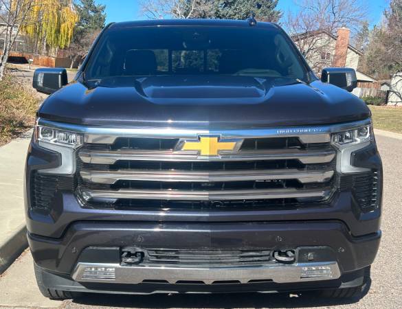 Experience the perfect blend of power and luxury with the 2022 Chevrolet Silverado 1500 High Country Crew Cab. Dressed in a striking Northsky Blue Metallic exterior, this robust pickup is designed to impress both on and off-road. Under its hood lies a formidable Duramax 3.0L Turbo-Diesel I6 engine delivering an impressive 277 horsepower and a torque of 460 lb.-ft., ensuring you have all the muscle needed for any task. With a towing capacity of up to 12,900 lbs., this truck is ready for your toughest jobs while offering excellent fuel efficiency at 22 MPG city and 26 MPG highway.