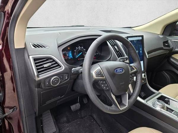* Convenience Package * Burgundy Velvet Metallic Tinted Clearcoat * Silver Roof-Rack Side Rails * Mini Spare Wheel * Lane Keeping Assist * Keyless Start * Rear Spoiler * Dune; Activex Seating Material Heated Bucket Seats * Engine: Twin-Scroll 2.0L Ecoboost * Equipment Group 201A * Front License Plate Bracket * Transmission: 8-Speed Automatic W/SelectshiftThis vehicle includes a Money-Back Guarantee* and passed our precise inspection process. Best of all the price you see is the price you pay. No haggling. No back and forth. No pressure. And this price is so good it is guaranteed. *Money-Back Guarantee is valid for 5 days or 250 miles, whichever comes first. Subject to certain terms and conditions. See store for details. Some restrictions apply.AutoNation Ford Jacksonville has a wide selection of exceptional pre-owned vehicles to choose from, including this 2022 Ford Edge. This Ford includes: BURGUNDY VELVET METALLIC TINTED CLEARCOAT ENGINE: TWIN-SCROLL 2.0L ECOBOOST 4 Cylinder Engine Gasoline Fuel Turbocharged EQUIPMENT GROUP 201A SILVER ROOF-RACK SIDE RAILS DUNE, ACTIVEX SEATING MATERIAL HEATED BUCKET SEATS Power Passenger Seat Power Driver Seat Heated Front Seat(s) Driver Adjustable Lumbar Premium Synthetic Seats Bucket Seats MINI SPARE WHEEL Temporary Spare Tire FRONT LICENSE PLATE BRACKET TRANSMISSION: 8-SPEED AUTOMATIC W/SELECTSHIFT 8-Speed A/T Transmission w/Dual Shift Mode A/T CONVENIENCE PACKAGE Fog Lamps Remote Engine Start Universal Garage Door Opener Security System Power Door Locks Keyless Entry Power Liftgate Remote Trunk Release *Note - For third party subscriptions or services, please contact the dealer for more information.* This well-maintained Ford Edge SEL comes complete with a CARFAX one-owner history report. With this exceptional SUV, you'll get sport, utility, and comfort. Enjoy driving? Well now you will get more thrills behind the wheel thanks to the heightened performance of AWD. Better handling. Better traction. Better driving experience. Get a complete and detailed history at no charge on this wonderfully maintained pre-owned vehicle. This Ford Edge SEL is in great condition both inside and out. No abnormal wear and tear. When all factors are equal, choose a vehicle equipped with a factory warranty like this gently driven gem. This Ford Edge SEL comes standard with features that are essential in the 21st Century. However, Ford decided to take it one step further and add a handful of quintessential options that will undoubtedly add to this vehicle's quality and value. Added comfort with contemporary style is the leather interior to heighten the quality and craftsmanship for the Ford Edge SEL. Where do you need to go today? Just punch it into the on-board navigation system and hit the road. Tires can be an expensive maintenance item. Luckily, this vehicle's tires are newly installed, so you've got miles and miles to go before you need to replace them. You know the the previous owner washes and polishes the vehicle with great care and detail? It's in impeccable condition. Sophistication, performance, style and class all wrapped up in this rare Ford Edge.
