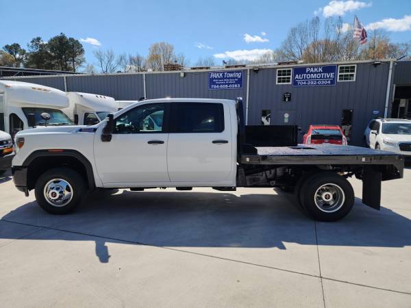VEHICLE INFO: 2022 GMC Sierra 3500 HD PRO Crew Cab DRW 4x4 Farm Hauler Work Truck with CROWNLINE Flatbed Setup