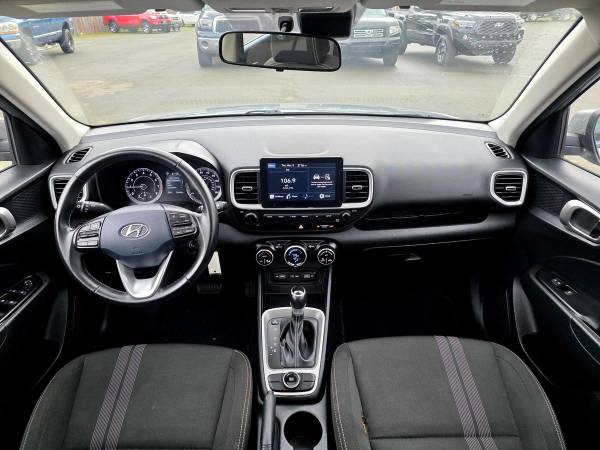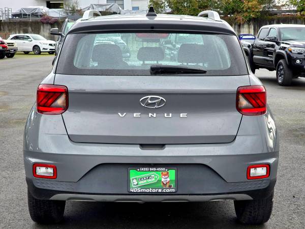 The 2022 Hyundai Venue SEL is a front-wheel-drive subcompact SUV powered by a 1.6L 4-cylinder engine with 121 horsepower and 113 lb-ft of torque, paired with an Intelligent Variable Transmission (IVT). It features a combined fuel economy of up to 31 MPG (29 city/33 highway), a 17-inch aluminum wheel, and a curb weight of 2,612 lbs. Key specs include a 99.2-inch wheelbase, 159.1-inch length, 69.7-inch width, and 61.6-inch height. Engine and performanceEngine: 1.6L 4-cylinderHorsepower: 121 hpTorque: 113 lb-ftTransmission: Smartstream Intelligent Variable Transmission (IVT)Drivetrain: Front-wheel drive (FWD)Drive Modes: Normal, Sport, and Snow Fuel economyCity: 29 MPGHighway: 33 MPGCombined: 31 MPG DimensionsWheelbase: 99.2 inchesLength: 159.1 inchesWidth (without mirrors): 69.7 inchesHeight: 61.6 inchesGround Clearance: 6.7 inches WeightsCurb Weight: 2,612 lbsGross Vehicle Weight Rating (GVWR): 3,770 lbs Wheels and tiresWheel Size: 17 x 6.5 inches (aluminum)Tire Size: P205/55HR17 Other specsCargo Capacity: 18.7 cubic feet (with rear seats up)Fuel Tank Capacity: 11.9 gallonsSeating Capacity: 5 passengers Why Buy from 405 Motors?? No-Haggle Pricing - Transparent, fair, and stress-free deals? Lowest Sales Tax in Washington - Save more on your next vehicle purchase? Huge Selection of Quality Used Vehicles - Find the perfect Acura, Honda, or Toyota? No Sales Pressure - Browse at your own paceevery car is unlocked!? Thoroughly Inspected Vehicles - Quality you can trust? On-Site Service Department - Expert maintenance & repairs? Easy Financing & Extended Warranties - Competitive rates & protection options? Fast & Efficient Buying Process - Get in and out with minimal wait time?? Visit 405 Motors - Your Trusted Used Acura Dealer Near Seattle, WA?? 24115 Snohomish Woodinville Rd, Woodinville, WA 98072?? Call: (425) 212-1124