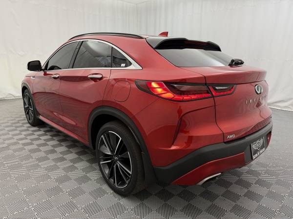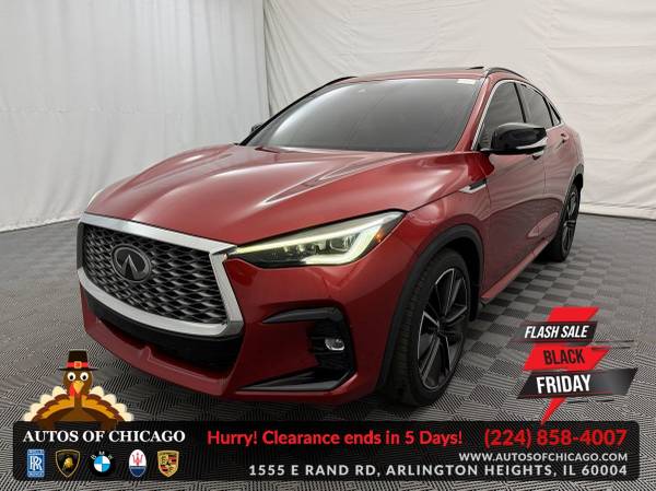 Our 2022 INFINITI QX55 ESSENTIAL AWD with the ProASSIST Package stands out in any crowd with its seductive fastback styling presented in Dynamic Sunstone Red. Motivated by a TurboCharged 2.0 Liter 4 Cylinder generating 268hp connected to a CVT for impressive acceleration. Superlative driving dynamics and the ability to attain up to 28mpg on the highway ensure this All Wheel Drive SUV brings a smile to your face on every journey. Aerodynamic fastback styling sets our INFINITI apart from the competition with a power sunroof, LED headlamps/signature lighting, and stunning 20-inch machine-finished alloy wheels. You'll know our QX55 ESSENTIAL is the perfect choice for you the moment you step into its masterfully crafted interior. Soft perforated leather and dark-tint aluminum trim create a tranquil ambiance enhanced with a suite of first-class amenities such as heated/ventilated power front seats, a heated multi-function steering wheel, keyless entry/ignition, remote engine start, and dual-zone automatic climate control. Staying connected and entertained is seamless with our INFINITI's dual-screen full-color infotainment system providing navigation, Bluetooth®, Android Auto®, wireless Apple CarPlay®, USB inputs, and Bose audio. Peace of mind joins you in our INFINITI thanks to adaptive cruise control, blind-stop monitoring with rear cross-traffic alert, lane-keeping assist, traffic sign recognition, a backup camera with surround view, and a heads-up display. You deserve to experience our impressive QX55 ESSENTIAL! Save this Page and Call for Availability. We Know You Will Enjoy Your Test Drive Towards Ownership!