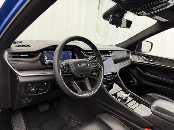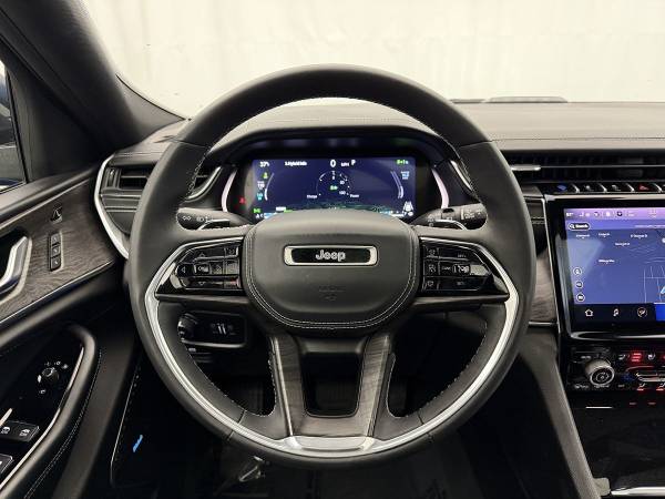 Our One Owner 2022 Jeep Grand Cherokee 4xe Overland 4X4 with the Luxury Tech IV Pack is ready to go over almost anything in Hydro Blue Pearlcoat! Motivated by a TurboCharged 2.0 Liter 4 Cylinder and Dual Electric Motors that supply a combined 375hp to an 8 Speed Automatic transmission. This Four Wheel Drive SUV is fearless off-road, with a Quadra-Drive 4WD system and a Quadra-Lift air suspension, and it scores nearly 23mpg on the highway using gasoline. Using electricity, our plug-in hybrid gets nearly 26miles of range on a single charge. Charged-up design features for our Grand Cherokee include LED lighting, fog lamps, a dual-pane sunroof, bold body cladding, a hands-free liftgate, and 20-inch alloy wheels. Refined yet versatile, our Overland cabin pampers you with our package for heated/ventilated/massaging Nappa leather front seats, heated rear seats, four-zone automatic climate control, and wireless charging. A heated leather power steering wheel is standard, and staying in touch is easy with Uconnect® technology, a 10.25-inch digital instrument panel, a 10.1-inch touchscreen, full-color navigation, wireless Android Auto®/Apple CarPlay®, Bluetooth®, WiFi compatibility, voice recognition, and premium audio. Jeep's intelligent approach to safety is in the spotlight with a backup camera, a blind-spot monitor, adaptive cruise control, automatic braking, and more. Master modern adventure today in our Grand Cherokee 4xe Overland! Save this Page and Call for Availability. We Know You Will Enjoy Your Test Drive Towards Ownership!