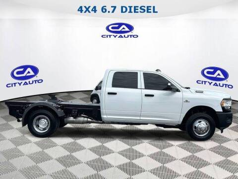 9Ol/57O/5OOl. STK#515547. Max Tow Package: 12.0" Dual Wheel Rear Axle; Add 4.10 Axle Ratio. Quick Order Package 2YA Tradesman: Urethane Shift Control; Halogen Quad Headlamps; Door Sill Scuff Pads; Glove Box; Exterior Mirrors with Supplemental Signals; Map/courtesy Lamp; Exterior Mirrors Courtesy Lamps; Trailer Tow Mirrors; Rear Dome Lamp; Exterior Mirrors with Heating Element; Black Key Fob; Matte Black Grille Surround; Mirror Running Lights; Black Exterior Mirrors; Overhead Console; Overhead Cupholder Lamp; Power Black Trailer Tow Mirrors. Electrical Accessory Group: Trailer Brake Control; Voltage Monitoring Auto Idle Up System; 220 Amp Alternator. Dual Rear Wheels: Bright Wheel Skins; LT235/80R17E BSW All-Season Tires; 6000# Front Axle with Hub Extension; 17" X 6.0" Argent Steel Wheels; 11.50" Dual Wheels Rear Axle; 14. 000 lbs GVWR. Quick Order Package 2GA Tradesman: Halogen Quad Headlamps; Door Sill Scuff Pads; Glove Box; Exterior Mirrors with Supplemental Signals; Map/courtesy Lamp; Exterior Mirrors Courtesy Lamps; Trailer Tow Mirrors; Rear Dome Lamp; Exterior Mirrors with Heating Element; Black Key Fob; Matte Black Grille Surround; Mirror Running Lights; Black Exterior Mirrors; Overhead Console; Overhead Cupholder Lamp; Power Black Trailer Tow Mirrors. Remote Keyless Entry. Trailer Brake Control. Full Size Spare Tire. Manual DPF Regeneration. 115V Auxiliary Power Outlet. Front Fog Lamps. Voltage Monitoring Auto Idle Up System. Add 4.10 Axle Ratio. Transfer Case Skid Plate Shield. Cargo and CHMSL Lamp. LED Tail Lamps. **Equipment listed is based on original vehicle build and subject to change. Please confirm the accuracy of the included equipment by calling the dealer prior to purchase. 9Ol/57O/5OOl. Prices listed do not include the $895 processing fee, taxes, tags, title, license, registration or other delivery charges. Not responsible for typographical errors, price or equipment discrepancies. Not responsible for errors in inventory listings on third-party sites. Vehicles listed on this site may have been sold or otherwise removed from inventory. Please call to confirm price and availability.