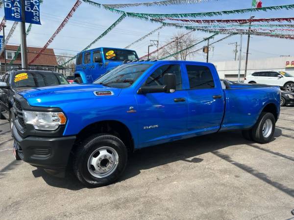 2022 RAM 3500 TRADESMAN 4X4 CREW CAB 8'---6.7L CUMMINS TURBO DIESEL---BALANCE OF FACTORY WARRANTY---DUAL REAR WHEELS---MAX TOWING PACKAGE---FACTORY 30,000LBS 5TH WHEEL HITCH BY MOPAR---AUTOMATIC LEVELING REAR SUSPENSION---TRAILER BRAKE CONTROLLER---50 GALLON FUEL TANK + 100 GALLON AUX FUEL TANK WITH AUTO PUMP(150 GALLON FUEL CAPACITY!)---12 TOUCH SCREEN AM/FM/XM RADIO---NAVIGATION---BLUETOOTH HANDSFREE CALLING & AUDIO---APPLE CARPLAY---ANDROID AUTO---115V OUTLET WITH 400WATT POWER INVERTER --- FLEXIBLE FINANCE OPTIONS AVAILABLE ---CASH JOBS --- BAD CREDIT ---- NO CREDIT --- MATRICULA --- NO LICENSE --- SE HABLA ESPANOL >>>FOR PRE APPROVAL PLEASE VISIT OUR WEBSITE WWW.WINDYCITYMOTORS.CO AND FILL OUT OUR SECURED LOAN APPLICATION <<< PLEASE CALL OR TEXT 773-717-7000 TO SCHEDULE APPOINTMENT/TEST DRIVE --- ---AFTER HOURS YOU MAY TEXT 773-457-8898 FOR YOUR CONVENIENCE --- ---- WE ARE A FULL AUTO REPAIR SERVICE SHOP. WE PROVIDE SERVICES FOR ALL OF YOUR CAR/TRUCK NEEDS; FROM OIL CHANGES TO MAJOR REPAIRS AND BODYWORK. --- THANK YOU VERY MUCH FROM THE WINDY CITY MOTORS TEAM.