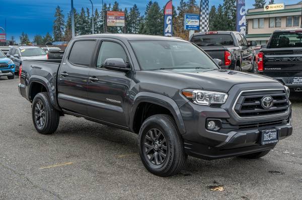 The 2022 Toyota Tacoma 2WD SR5 Double Cab 5' Bed V6 AT (Natl) stands out with its sleek and modern design, highlighted by the Magnetic Gray Metallic exterior. This robust pickup combines Toyota's legendary reliability with a comfortable and spacious interior, featuring the elegant Cement color scheme. Powered by a 3.5L V6 engine, this Tacoma delivers a balanced blend of power and efficiency, making it perfect for both city drives and weekend getaways.Inside, drivers will appreciate the all-weather floor liner and door sill protectors, ensuring the cabin remains pristine despite the rigors of daily use. The interior design is both functional and stylish, with intuitive controls and ample storage space. With these features, every ride becomes more comfortable and convenient, enhancing the overall driving experience.The Tacoma also boasts practical features like a bed light, ensuring users can access the cargo area with ease, even in low-light conditions. Toyota's commitment to environmental standards is evident with its 50 state emissions compatibility, making it a responsible choice for eco-conscious drivers. The combination of its sturdy 5' bed and efficient V6 engine completes this Tacoma as a versatile and reliable pick for any adventure or task.