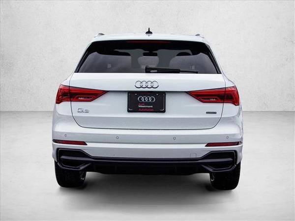 * Panoramic Roof * Leather Seats * Rear Spoiler * Black; Leather Seating Surfaces * Ibis WhiteThis vehicle includes a Money-Back Guarantee* and passed our precise inspection process. Best of all the price you see is the price you pay. No haggling. No back and forth. No pressure. And this price is so good it is guaranteed. *Money-Back Guarantee is valid for 5 days or 250 miles, whichever comes first. Subject to certain terms and conditions. See store for details. Some restrictions apply.Thank you for your interest in one of Audi Westmont's online offerings. Please continue for more information regarding this 2023 AUDI Q3 Recently performed our rigorous and Certified AutoNation 125 point Performance inspection; Performed at Audi Westmont by factory trained technicians, with all services brought up to date. Also includes our exclusive AutoNation 90 day/ 4,000 miles warranty. Complimentary loaner cars (over 60 Audis available), complimentary lifetime car washes (open 6 days a week) and much more. * A Money-Back Guarantee is valid for 5 days or 250 miles, whichever comes first. Subject to certain terms and conditions. See store for details. Some restrictions apply. Our pre-owned vehicles are priced right from the beginning. The price you see if the price you pay. No haggling. No back and forth. No pressure. This Audi includes: GLACIER WHITE METALLIC BLACK W/ROCK GRAY, LEATHER SEATING SURFACES Leather Seats CONVENIENCE PACKAGE Keyless Start Mirror Memory Seat Memory Hands-Free Liftgate Auto-Dimming Rearview Mirror Heated Mirrors Security System Satellite Radio Power Door Locks Keyless Entry Power Folding Mirrors Requires Subscription Remote Trunk Release *Note - For third party subscriptions or services, please contact the dealer for more information.* This Audi Q3 offers all the comforts of a well-optioned sedan with the utility you demand from an SUV. This Audi Q3 features AWD. That means power and control delivered to all four wheels for maximum grip and improved handling. Added comfort with contemporary style is the leather interior to heighten the quality and craftsmanship for the Audi Q3 S line Premium.