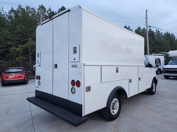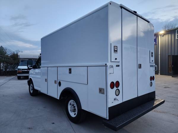 VEHICLE INFO: 2023 Chevrolet Express 3500 SRW KUV Enclosed Utility Service Box Plumber Mechanic Contractor Work Truck Van (Same as GMC Savana)