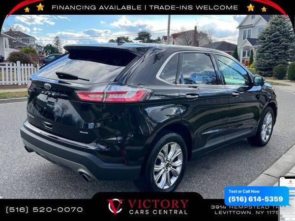 All pricing and details are believed to be accurate, but we do not warrant or guarantee such accuracy. The prices shown above may vary from region to region, as will incentives, and are subject to change. All cars are sold cosmetically As-Is. Vehicle information is based on standard equipment and may vary from vehicle to vehicle. Call or email for complete vehicle specific information. Price Does not include tax, title, license, destination charges, finance charges, or any reconditioning fees. Our special Internet pricing cannot be extended without a printed copy of the online pricing. The in-store price may exceed our special online pricing. Sorry but we cannot extend special pricing without a printed copy of the on-line pricing. To take advantage of our special Internet discounts, please print this page and present it to your salesperson at the BEGINNING of the transaction. Special Internet pricing posted on this ad/coupon/promotion is only available to customers who reference such pricing & present the ad at time of sale otherwise our store standard list price applies. Please be advised this ad is a Special Internet only ad. Prices can be modified and adjusted weekly, daily and sometimes hourly due to inquiries, bidding and website traffic on any Vehicles. All displayed inventory is subject to prior sale and all prices expire at midnight on the date displayed. Every reasonable effort has been made to ensure the accuracy of the information contained on this site, however absolute accuracy cannot be guaranteed. Advertised special excludes state tax, title, license, registration, NY state inspection, NYS tire recycling fee, finance charges, and dealer fees if applicable. Please verify any information in question with the dealership sales manager. This is easily done by calling us at 516-520-0070 or by visiting us at the dealership. **With approved credit. Black 2023 Ford Edge Titanium AWD 8-Speed Automatic EcoBoost 2.0L I4 GTDi DOHC Turbocharged VCT AWD.