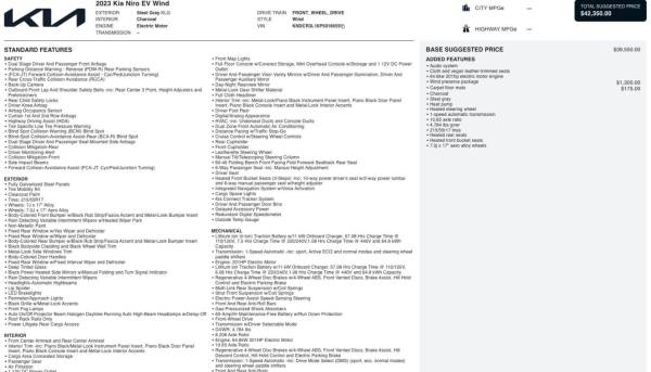 Freeman Motor Company is a 3 time winner of Oregon's QUALITY Dealer of the YEAR. You can connect with us by calling 503-485-0007.\n\nCall now or visit our website to confirm availability! This 2023 Kia Niro EV has a Steel Gray exterior and Charcoal interior. 31,914 miles. Stock #SNK6659.\n\nFEATURES AND OPTIONS YOU SHOULD KNOW ABOUT:\n