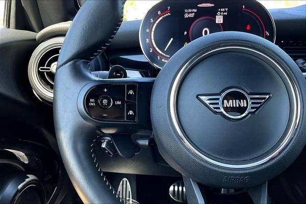 Storage Package, 6 Speakers, AM/FM radio: SiriusXM, AM/FM Stereo, Radio data system, Air Conditioning, Rear window defroster, Power steering, Power windows, Remote keyless entry, Steering wheel mounted audio controls, Four wheel independent suspension, Speed-sensing steering, Traction control, 4-Wheel Disc Brakes, ABS brakes, Dual front impact airbags, Dual front side impact airbags, Emergency communication system, Front anti-roll bar, Integrated roll-over protection, Knee airbag, Low tire pressure warning, Occupant sensing airbag, Rear anti-roll bar, Power moonroof, Brake assist, Electronic Stability Control, Exterior Parking Camera Rear, Auto High-beam Headlights, Delay-off headlights, Front fog lights, Fully automatic headlights, Rear fog lights, Speed control, Bumpers: body-color, Heated door mirrors, Power door mirrors, Apple CarPlay Compatibility, ConnectedDrive Services, Convertible roof lining, Driver door bin, Driver vanity mirror, Dynamic Digital Instrument Cluster, Enhanced USB & Bluetooth, Front reading lights, Illuminated entry, John Cooper Works Sport Seats, Leather steering wheel, MINI Assist eCall, MINI Connected, MINI TeleServices, Outside temperature display, Overhead console, Passenger vanity mirror, Power convertible roof, Remote Services, Sport steering wheel, Tachometer, Telescoping steering wheel, Tilt steering wheel, Trip computer, Dinamica/Cloth Upholstery, Front Bucket Seats, Heated Front Seats, Passenger Seat Height Adjustment, Split folding rear seat, Front Center Armrest w/Storage, Passenger door bin, Alloy wheels, Wheels: 17" x 7.0" JCW Track Spoke Black, Glass rear window, Rain sensing wipers, Speed-Sensitive Wipers, Variably intermittent wipers
