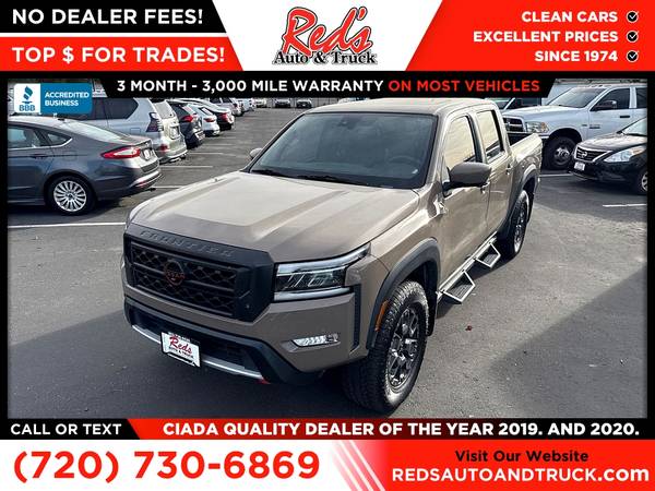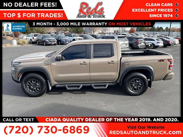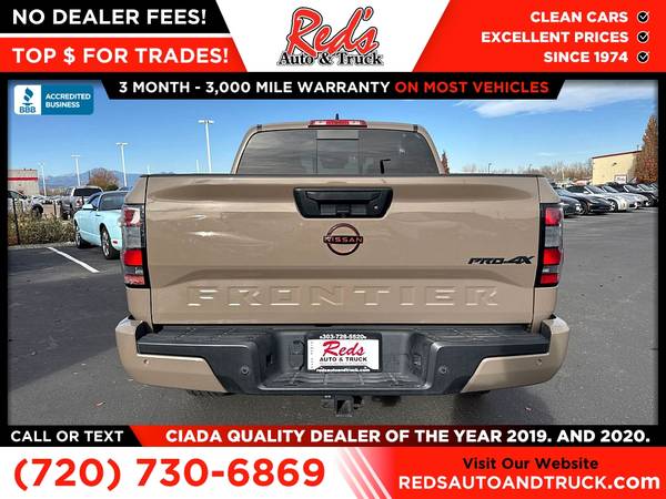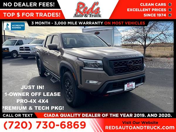 JUST IN! 1-OWNER OFF-LEASE 2023 NISSAN FRONTIER PRO-4X BAJA STORM WITH HUGE $48,360 MSRP, FACTORY WARRANTY WELL-OPTIONED! Red's Auto And Truck is pleased to present this local 1-Owner 2023 Nissan Frontier PRO-4X Offroad with $2,190 Pro-Convience Package, $505 Off-Road Protection Package, $2,790 Pro-Premium Package with Fender Audio, $990 Technology Package with lane departure, blind spot, intelligent cruise, and more! This is also one of, if not the best, colors for a PRO-4X! Remember, we also never charge a dealer handling or doc fee, include a limited warranty on most vehicles, and offer great protection plans at an affordable price to help protect your purchase for years to come.