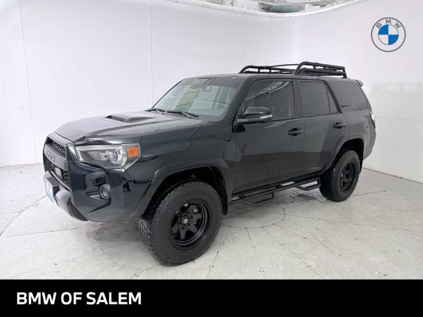 Navigation, Sunroof, 4x4, Heated Driver Seat, Back-Up Camera, Premium Sound System, Satellite Radio, iPod/MP3 Input, Onboard Communications System, Trailer Hitch, Aluminum Wheels, Keyless Start, Dual Zone A/C, Cross-Traffic Alert, Smart Device Integration. Rear Spoiler, MP3 Player, Keyless Entry, Privacy Glass, Steering Wheel Controls. Toyota TRD Pro with Midnight Black Metallic exterior and BLACK/GRAPHITE interior features a V6 Cylinder Engine with 270 HP at 5600 RPM*.