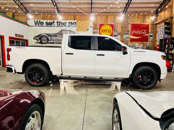Video link below!!! Better than NEW…2024 Chevrolet Silverado 1500 with the highly sought after RST package!!! One owner, local truck…ordered with the 6.2L (no issues with this 6.2, as it’s beyond the issue cutoff date) not the 5.3L like most RST’s have. This truck has zero imperfections…and everything added that you want to add…already done!!! Roll and lock bed cover, cold air intake and window tint. RST (Rally Sport Truck) gets the blacked out grill and emblems, body color bumpers, RST-only wheel option and sport tuned suspension. The bed of this truck has a carpet liner…and looks like it’s never had anything in it. Literally, a better than new truck!!!
